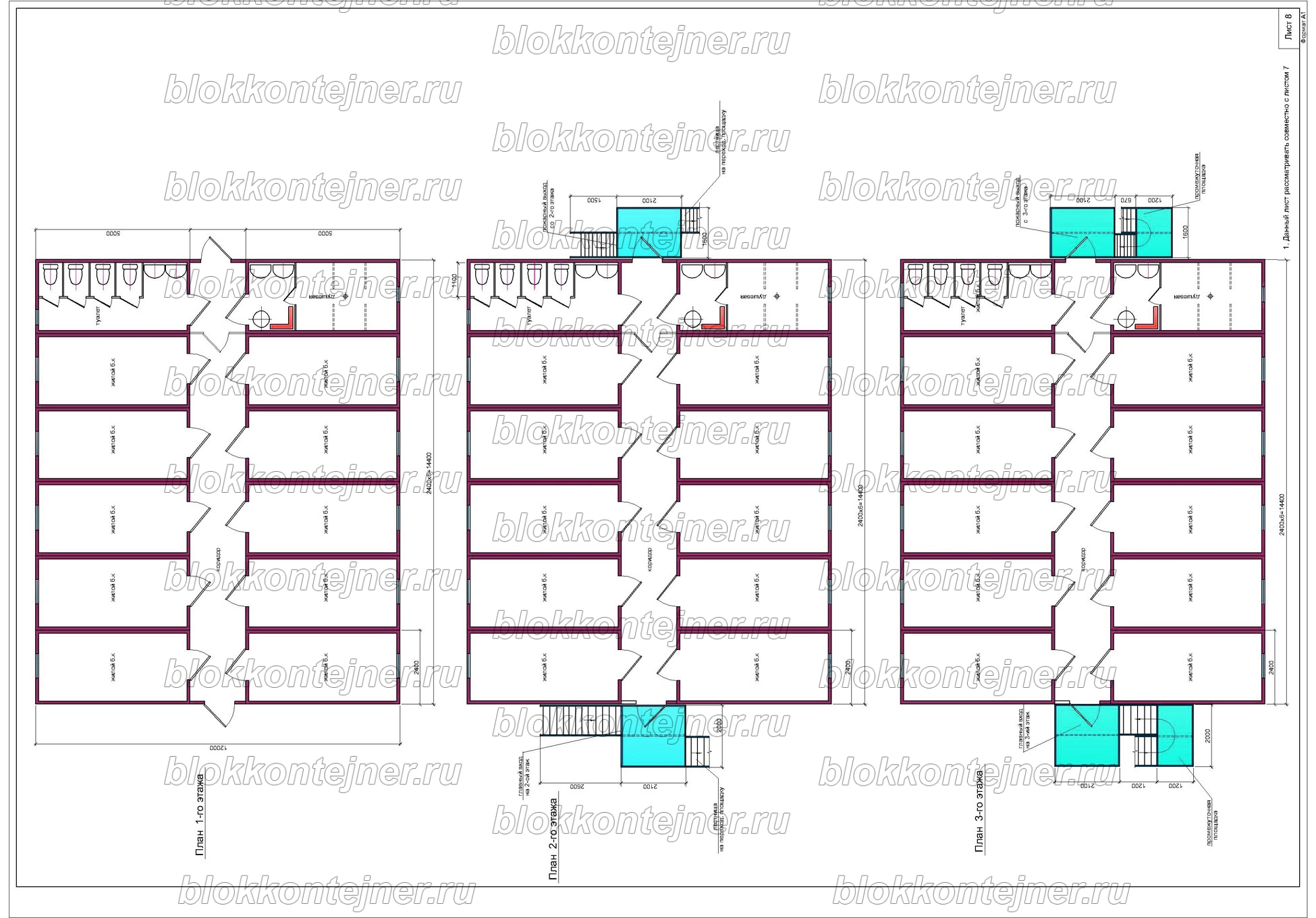 ГлавнаяПроекты готовых решенийМодульные здания → Трехэтажное общежитие из 36 БК на 100 человек
